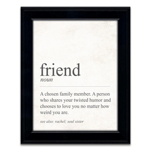 This is a fun gift that a friend is sure to love. Not only will the definition make them smile, but the bottom of the print is personalized with their name!