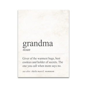 This is a great gift for grandma that she is sure to love. Not only will the definition make her laugh, but the bottom of the print is personalized with her name!