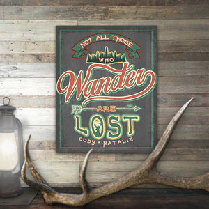 This decorative wall sign features your personalization below the quote: "Not All Those Who Wander Are Lost".
