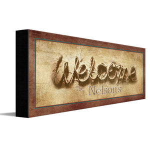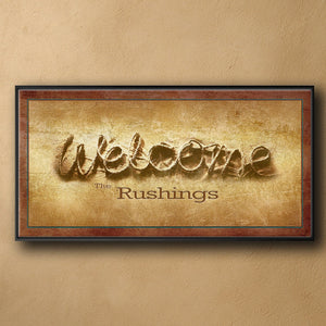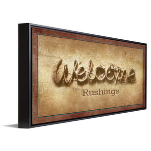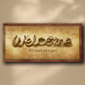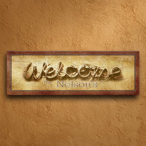 This country western print features the word, "WELCOME" spelled out with a rope and your personalization as a part of the art!