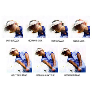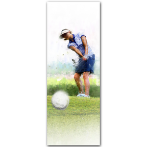 Personalized art for the golfer that features your name on the golf ball as well as a selection of a Right or Left handed player, three skin tone options and three hair color choices. Simply enter your customization options in the input boxes and let our artists do the rest... ships ready to hang and enjoy!
