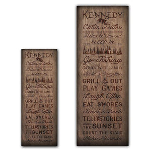 Personalize this cabin family rules sign with the name of your choice at the top of the print. Enjoy reading all the fun "rules" including all the best parts about life at the cabin.