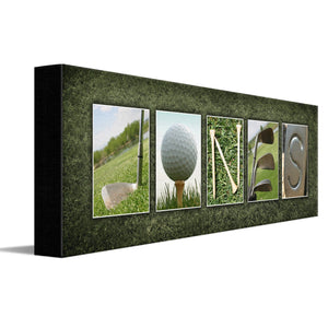 Get the perfect gift for the golf fan in your life! Use our golf-themed photography letters to spell out a first name, last name, or any word of your choice and create a stunning and uniquely personalized art gift.