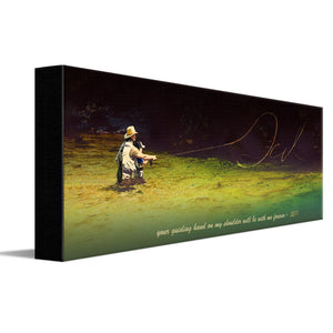 If you look closely, the fly line cascading over the river spells "DAD." Each print is created just for you, with your customization as a part of the art. It makes the perfect Father's Day gift for the fly-fishing father. Each piece is personalized just for him and will be enjoyed for years to come.