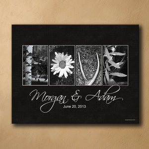 The beautiful black & white nature photos spell "LOVE" in this romantic personalized gift...