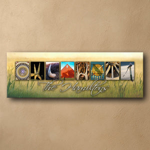 This creative and stunning Oklahoma wall art print features themed photography from the Sooner state to spell out the name! Below the photos, you can add your family’s name to the personalized art print. Simply enter your desired personalization in the input box below and let our artists do the rest.