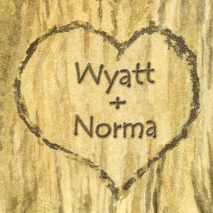The personalization is created as a permanent part of the image and will not look like a stamp or afterthought as it is uniquely adjusted by our designers to align perfectly in the heart. Since each personalization has an artist,s touch, previews of your names are not available. See the personalization detail (third image) for an example of the style and look of the personalized names.
