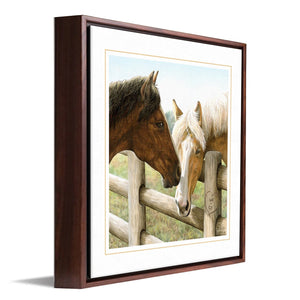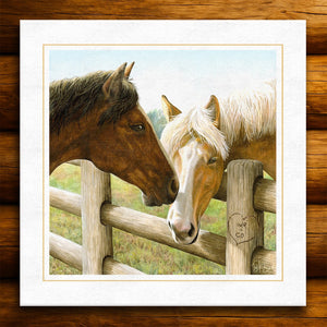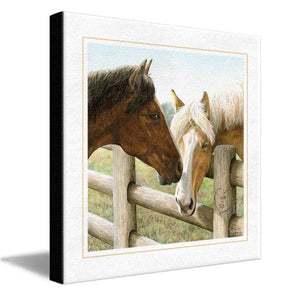 This romantic personalized gift is published from the original painting onto canvas and is personalized in the heart for you. The painting illustrates the gentle magnificence of a Palomino and a Bay horse that are looking longingly into each other's eyes.