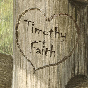 Your personalization is completed by our team of artists to ensure that your names or initials don’t look like a stamp or an afterthought. The personalization will be perfectly lined up within the heart. Please see the second image for an example of the look and feel of the personalization.