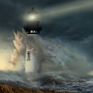 This art is detailed and rich with powerful beauty and symbolism. The lighthouse symbolizes a steady guide, a hope and a way forward to navigate the darkness and rough waters with its illumination.