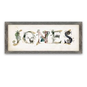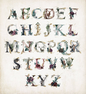 Personalize this fun woodland print with a name or word of your choice! This whimsical watercolor print has a full alphabet of letters to choose from, and all are unique with different flowers, trees, and woodland creatures (deer, elk, bears, foxes, etc). Enter your personalization below and let us do the rest.