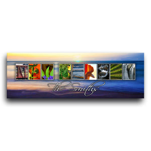 This creative and colorful New Jersey state art print features themed photography from the beautiful state to spell out the name. Below the photos, there is a space to add your family name or word of your choice to the personalized art! Simply enter your desired personalization in the input box below and let our artists do the rest. Made in the USA... order yours today!