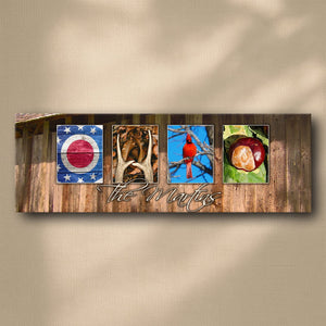 This colorful Ohio wall art print features themed photography from the Buckeye State to spell Ohio. Add your family’s name or word of choice to the personalized art print below the photos. Simply enter your desired personalization in the input box below and let our artists do the rest.