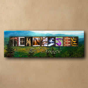 This creative Tennessee wall art print features themed photography from the state to spell its name. Below the photos, the print has a space to add your family name or word of your choice in the personalized art print! Simply enter your desired personalization in the input box below and let our artists do the rest.