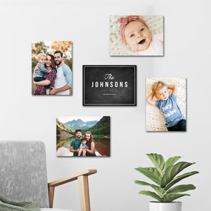 Upload 4 of your favorite photos and leave it to us to create a beautiful collage with your family name (or personalization of your choice) showcased in a contemporary chalkboard style at the center. This collage will be a beautiful centerpiece to accompany any room, and your guests will love looking at the memories you captured.