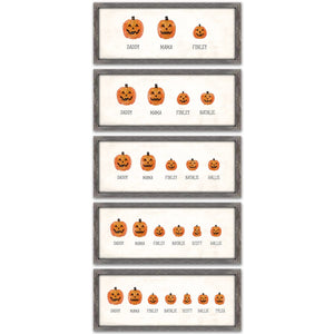 This fun personalized art print features a family of Jack-O-Lanterns. It is customized for you with the names and number of kids, and makes a truly special gift for Halloween!