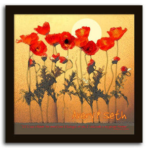 This decorative, framed flower art décor features beautiful red Poppies and the personalized name/s and date of your choice above the quote: