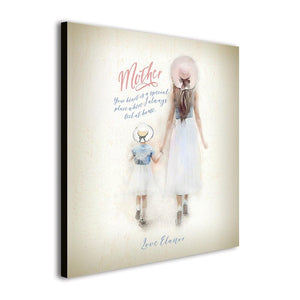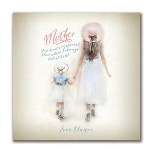 Simply enter your customization options in the input boxes below and let our artists do the rest. Your personalized text will appear at the bottom of the print, the quote above reads "Mother, your heart is a special place where I always feel at home."