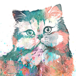 Celebrate your Persian Cat with this colorful personalized print that includes your pet,s name customized as a part of the image. Created in a colorful watercolor style, this Persian Cat art print makes a special gift or pet memorial.