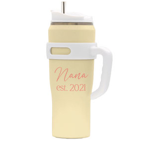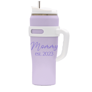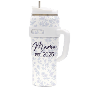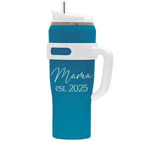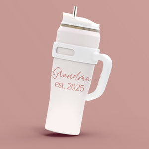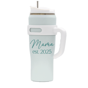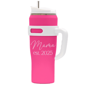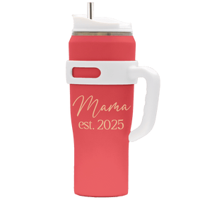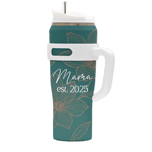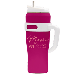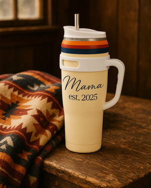 Treat Mom or Grandma to a gift that’s both personal and practical. This custom 40 oz stainless steel tumbler is beautifully designed with a 360° full-color gloss wrap and personalized with two lines of text—like “Mom” and “est. 2025.” It’s a heartfelt gift she’ll use every day.