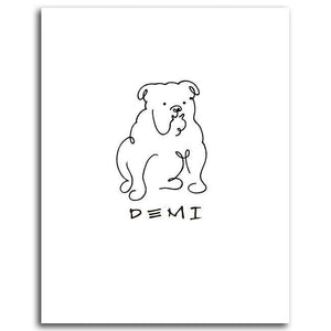 With only a few strokes of the pen, the artist has beautifully and masterfully captured the Bulldog breed. What,s more, this simple and elegant print is personalized with your dog,s name. Each personalization is uniquely created as a permanent part of the image and makes this print a truly special and fun way to decorate any space.