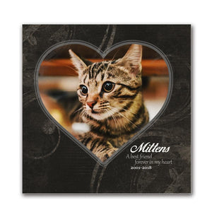 Turn your favorite photo of your cat into a personalized pet cat memorial that will be cherished for years to come. Select your print color and display option, enter your personalization (pet,s name and dates) and upload your cat,s photo (larger images are better). The end result is a stunning work of art that Comes ready-to-hang.