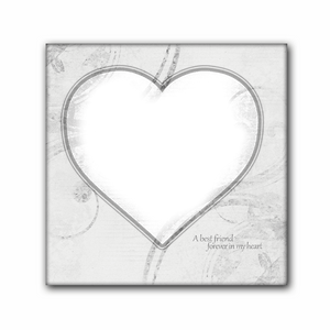 Preview your photo in the heart shaped cut out. Your personalized name and dates will appear with the quote "A best friend, forever in my heart".