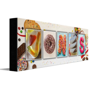 Make your home’s wall decor a little sweeter with the Sweets/Candy Name Art from Personal-Prints! Our sweets, candy, and baked good-themed art can spell out any first name, last name, or word of your choice!