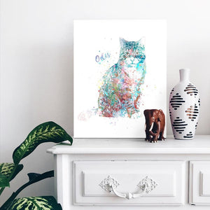 Celebrate your Tabby Cat with this colorful personalized print that includes your pet,s name customized as a part of the image. Created in a colorful watercolor style, this Tabby Cat art print makes a special gift or pet memorial.
